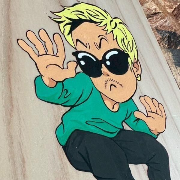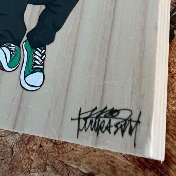 MURASAKI氏が得意とするキャラクタースタイルで描き下ろしたウッドパネル作品。